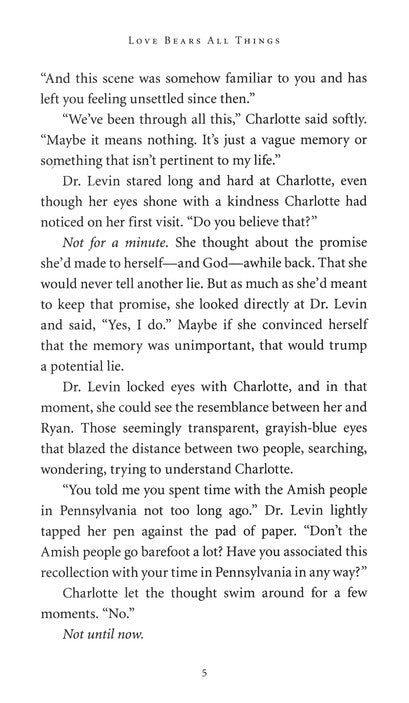 Charlotte begins building a friendship with Daniel that she'll need to lean on when more surprises surface from her past and she once again finds herself torn between two worlds. Will Charlotte friends in the Amish community be able to show her the power of redemption and lead her home?
