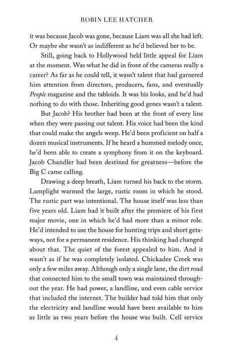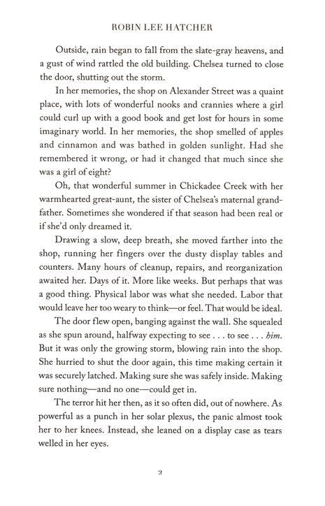 Escaping an abusive relationship, Chelsea flees to Chickadee Creek to work at her great-aunt Rosemary's antique shop. After his brother's death, actor Liam seeks peace at his vacation home there. When Chelsea discovers an old violin that may have belonged to Liam's great-great-grandmother, will the valuable instrument help them both find healing and love? 320 pages