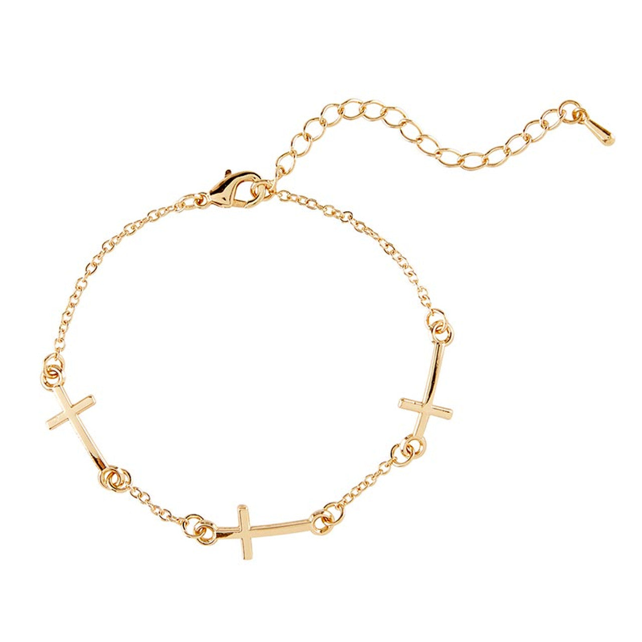 Delicate yet intricately crafted mini crosses symbolize the enduring message of hope, redemption, and spiritual devotion. Made from premium gold-plated stainless steel, our bracelet boasts durability and a lustrous finish that withstands the test of time. It features an adjustable chain with a lobster clasp closure, allowing for a customized fit that comfortably accommodates wrists of all sizes. The understated elegance of this bracelet makes it suitable for everyday wear, adding a touch of faith-inspired sophistication to any outfit, from casual to formal. It's a cherished gift for any occasion for yourself or a loved one.