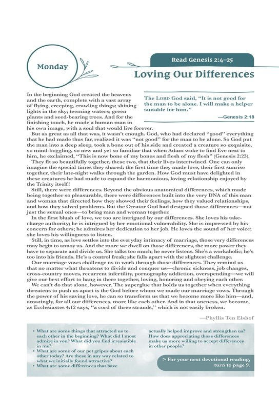 - 52 weekend devotions with advice from bestselling writers, marriage therapists, and pastors, including Les and Leslie Parrott, Gary Thomas, John Townsend, Henry Cloud, and Gary Smalley