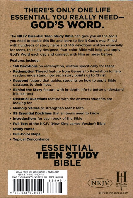The NKJV Essential Teen Study Bible can give you all the tools you need to tackle this life and learn to live it God's way. Filled with hundreds of study helps and 146 devotions written especially for teens, this fully designed, four-color Bible will help you apply God's Word each day and connect with Him as never before.