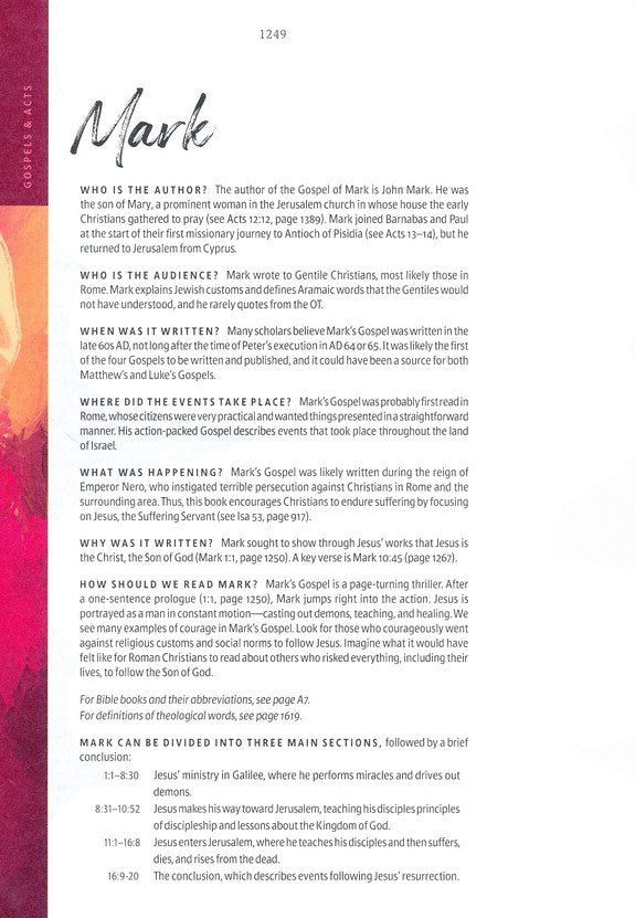 • Access to a suite of resources including a linked audio Bible through the Filament Bible app