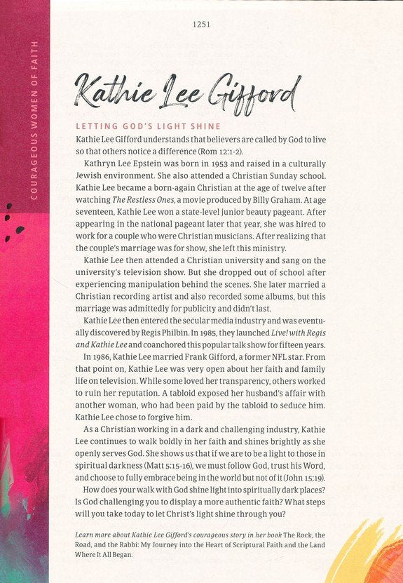 Courage can take root in us when we as women recognize God's truth over the lies that our world is telling us - lies that we often tell ourselves too. The Courage For Life Study Bible for Women is a rich, beautiful, and comprehensive study Bible - featuring a Bible study on every page - that guides us as we discover our ability to live purposeful lives of courage and to become the women God intends us to be.