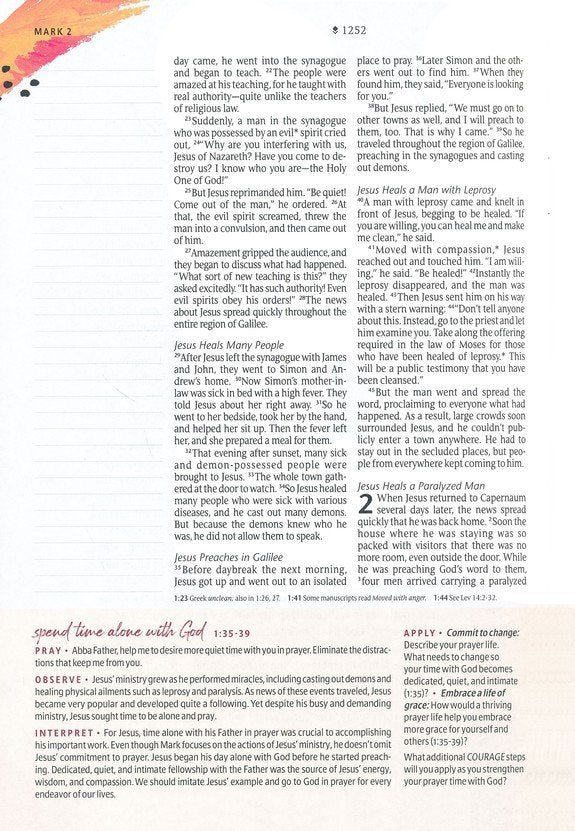 The Filament Bible app turns this Bible into a powerful study and devotional experience, enabling you to use your mobile phone or tablet to connect every page of this Bible to a vast array of related content, including study notes, devotionals, interactive maps, informative videos, and worship music. For no additional cost, purchase, size or weight, you will have access to a wealth of information and resources from the very page you are reading without cluttering up your Bible. Read the NLT Courage For Life Study Bible, Filament Enabled Edition for a traditional study Bible experience without the app or dive into all the free, easily accessible resources from your smartphone or tablet to explore God's Word for an enriching experience of His presence.