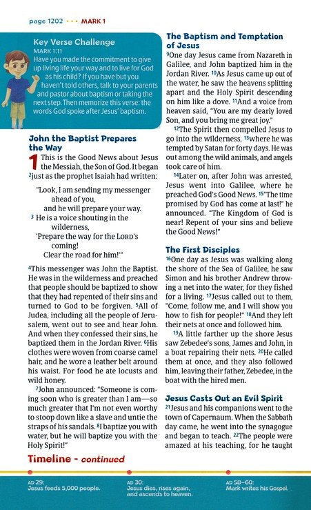 The NLT’s accurate and accessible Bible text uses familiar words that speak to the hearts and minds of readers without having to process technical biblical language. Perfect for readers age 7+.