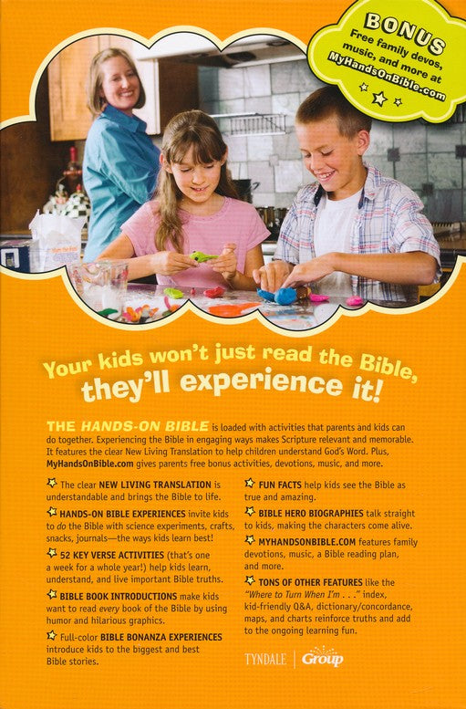 Jesus taught with hands-on lessons and illustrations. The Hands-On Bible uses the same experience-based learning to communicate God's Word in an active, understandable way. With hundreds of fun, memorable activities, the Hands-On Bible is packed with activities and experiences that invite kids to crawl inside the Scriptures and do God's Word! Exciting Bible features include 102 Hands-On Bible Experiences, 52 Key Verse Activities, 31 Bible Hero Biographies, 16 Bible Bonanza Experiences, 82 Jesus Connections, 66 Bible Book Intros, 69 Fun Facts, a Where to Turn When I'm . . . index, kid-friendly Q&A, 28 full-color tip-in pages, and charts and maps.
