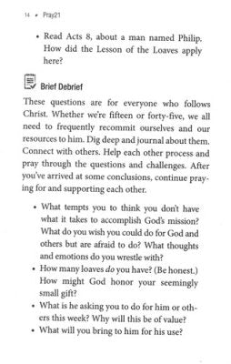 Pray21 is a National Movement created by teens and adults to pray together to discover their place in the cause of Jesus Christ. Thousands of churches nationwide will be accepting the mission to change the future of their church by getting involved in Pray21. This guide is the centerpiece of the 21-day mission. Each day includes amazing stories from Bible heroes and historical and contemporary figures. Supporting bible passages, thought-provoking questions, and prayers fill each day of the journey. Whether the call is an international lifetime mission or sharing your faith with a neighbor, this book will help you grow into the call.