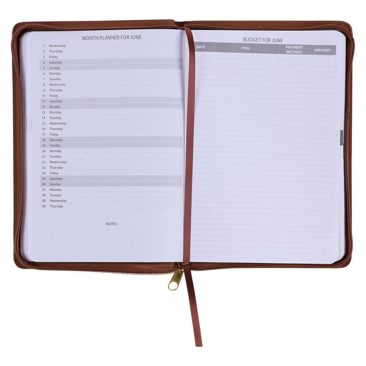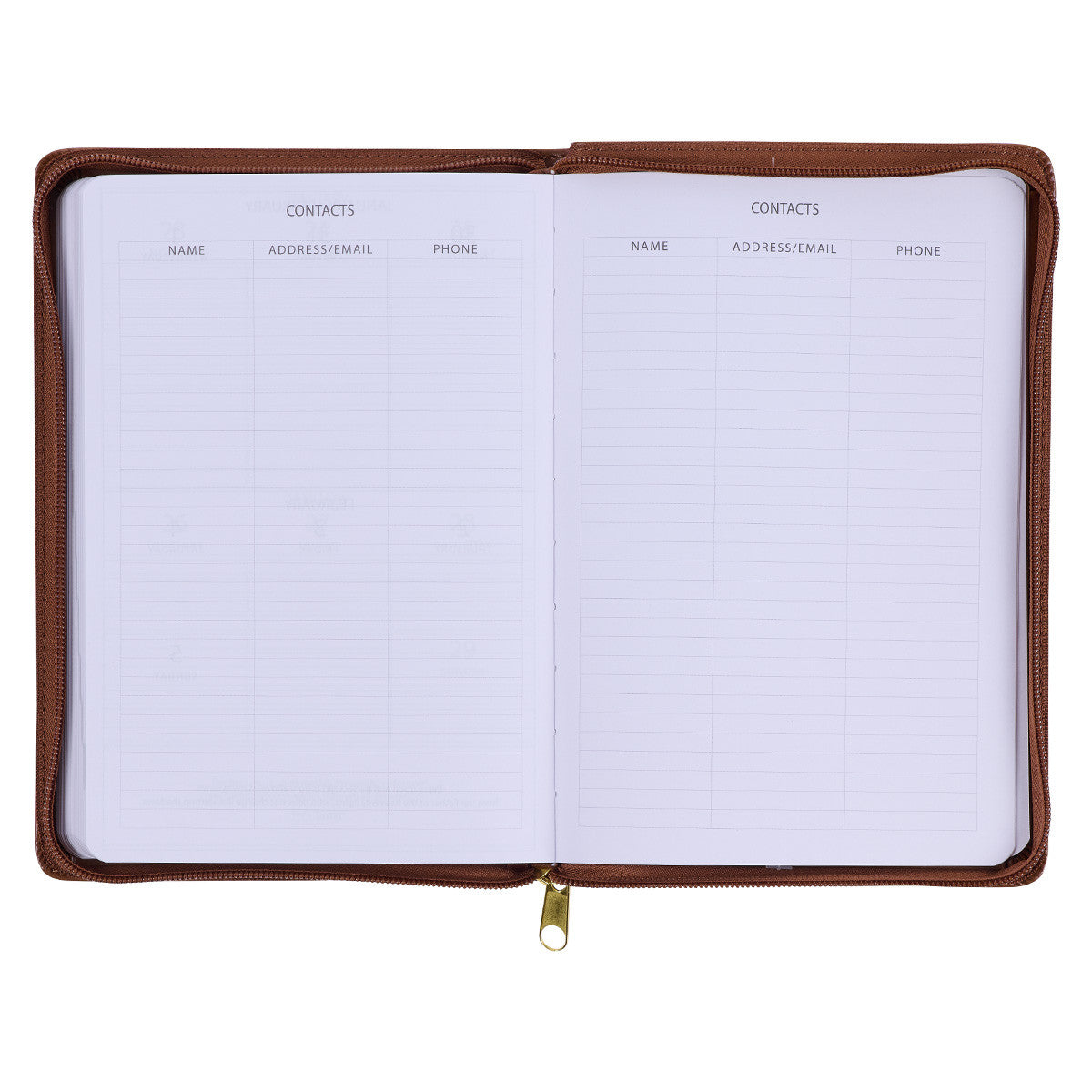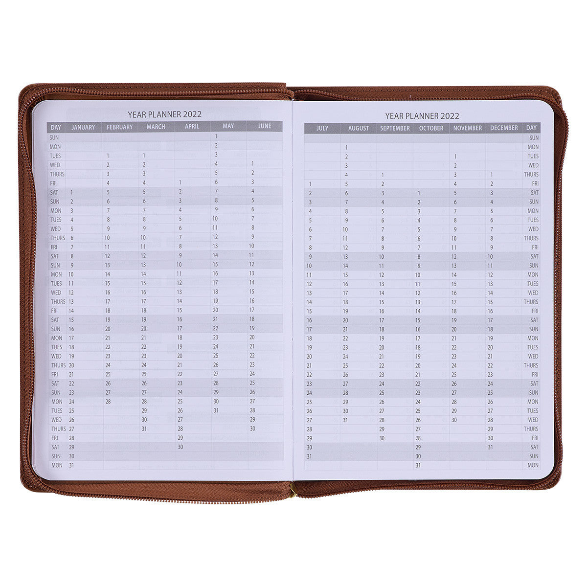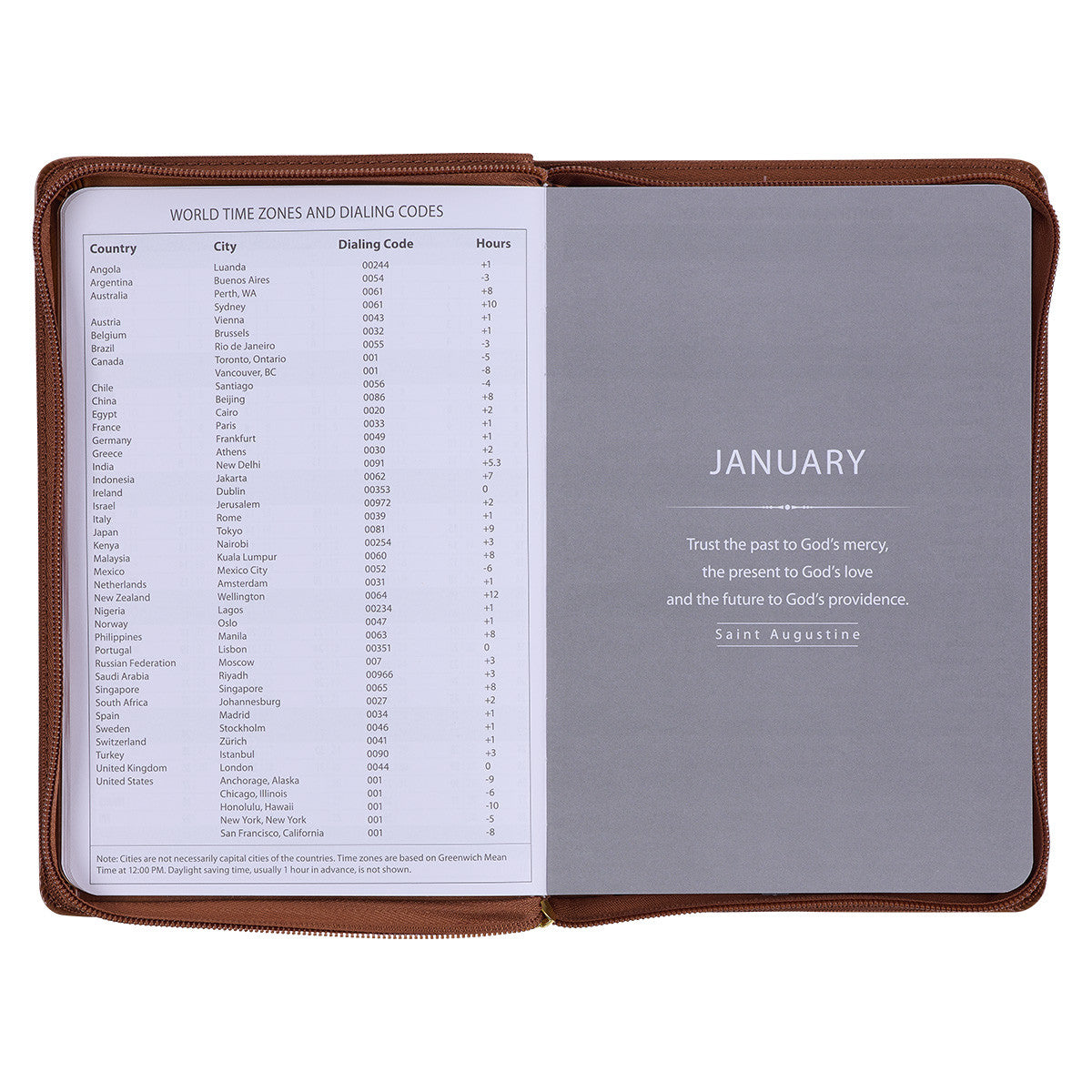 Refuge and Strength Brown Faux Leather Zippered Executive Planner - 2022