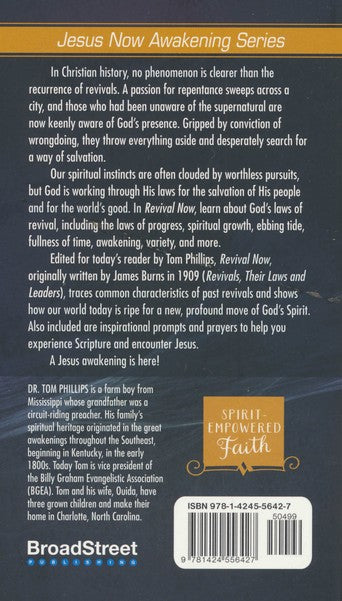 Edited for today’s reader by Tom Phillips, Revival Now, originally written by James Burns in 1909 (Revivals, Their Laws and Leaders), traces common characteristics of past revivals, and shows how our world today is ripe for a new, profound move of God’s Spirit. Also included are inspirational prompts and prayers to help you experience Scripture and encounter Jesus.