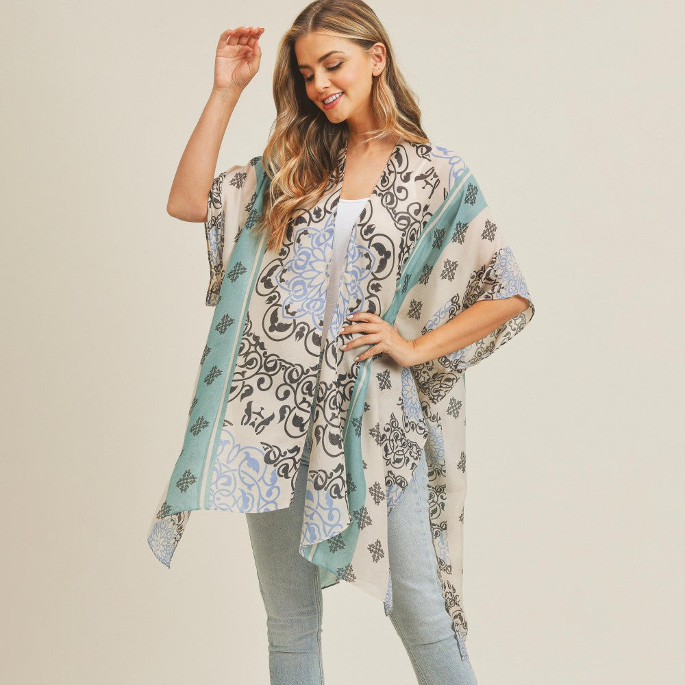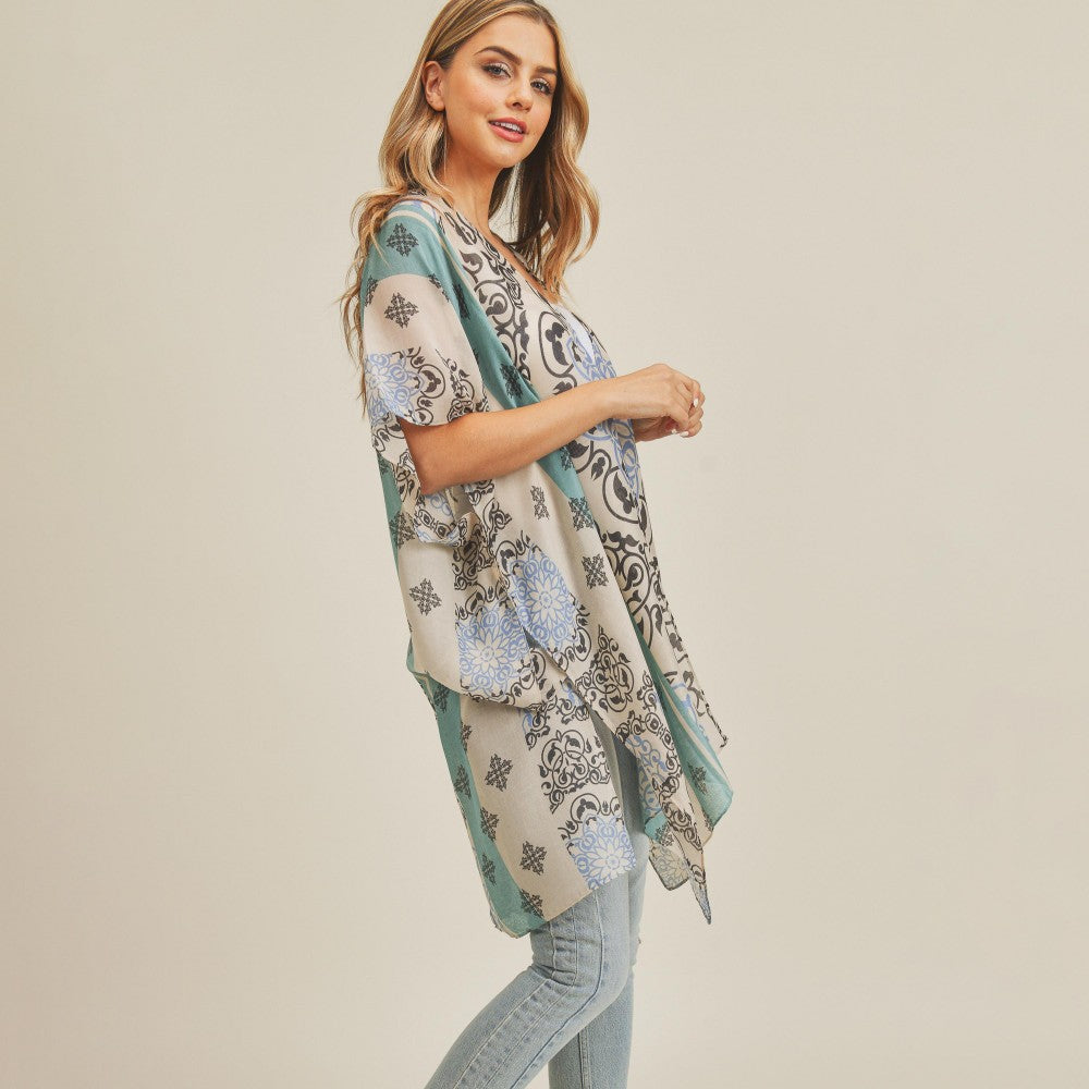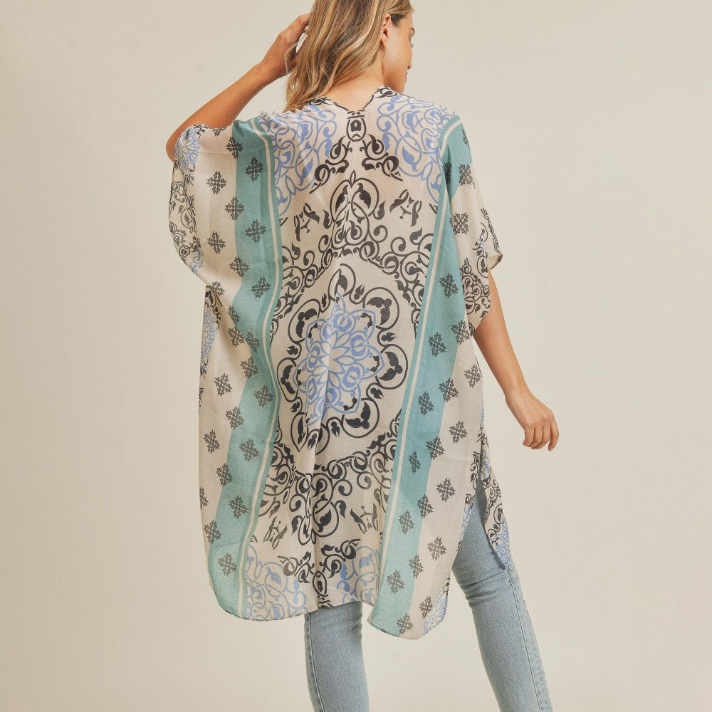 This lightweight Sheer Medallion Print Kimono provides the perfect cover-up for your swimming and beach days. Crafted from 100% polyester, this flowy, one-size-fits-most piece is ideal for any body type between sizes 0 and 14. The stylish and versatile kimono is a must-have for your beachwear collection.