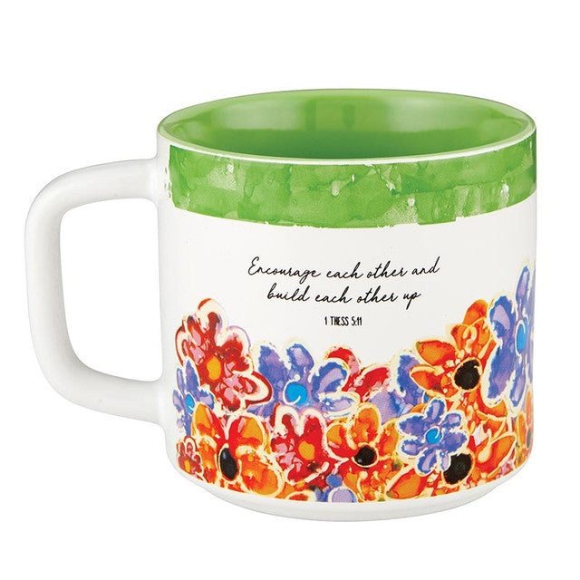 - Back of mug reads: Encourage each other and build each other up -1 Thessalonians 5:11