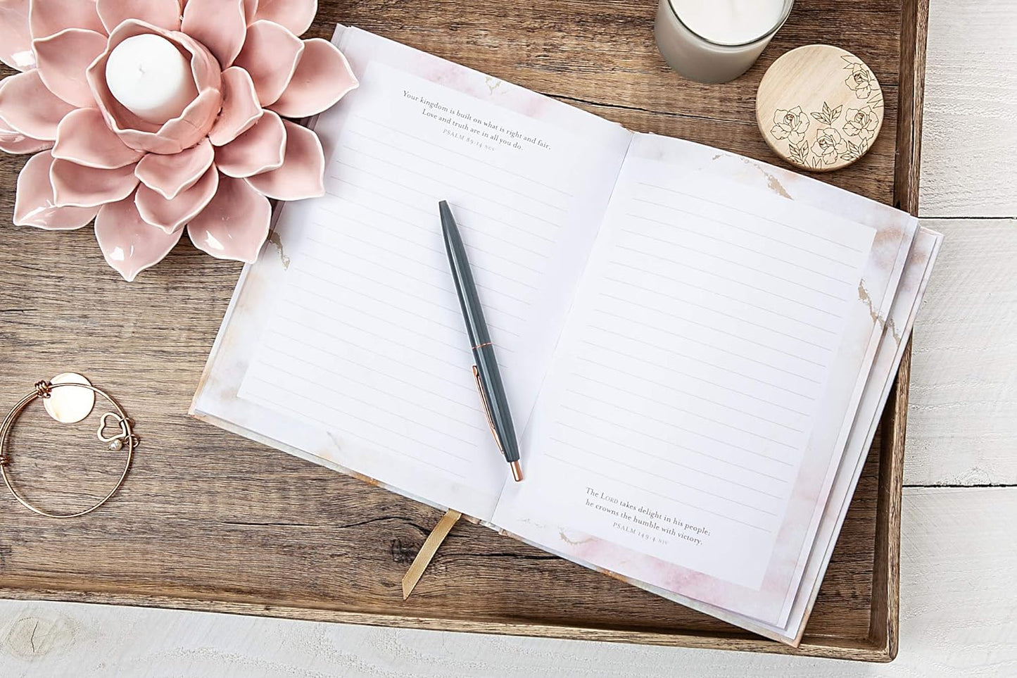This elegant and inspirational faith book features a beautifully designed interior with thought-provoking prompts and encouraging Scriptures from the book of Psalms. With lines for your personal writing, this prayer journal provides you with space to slow down and foster a stronger connection with God.