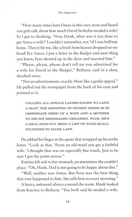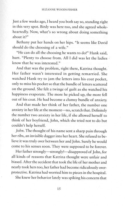 Katarina Stolzfus had a plan for her life that fell apart when her father relocated the family and John betrayed her by marrying someone else. As she begins to rebuild her life, she meets Andy Miller and asks herself is he for real? He appears to do everything right. Can Mindy trust Andy even though she was deceived once before?