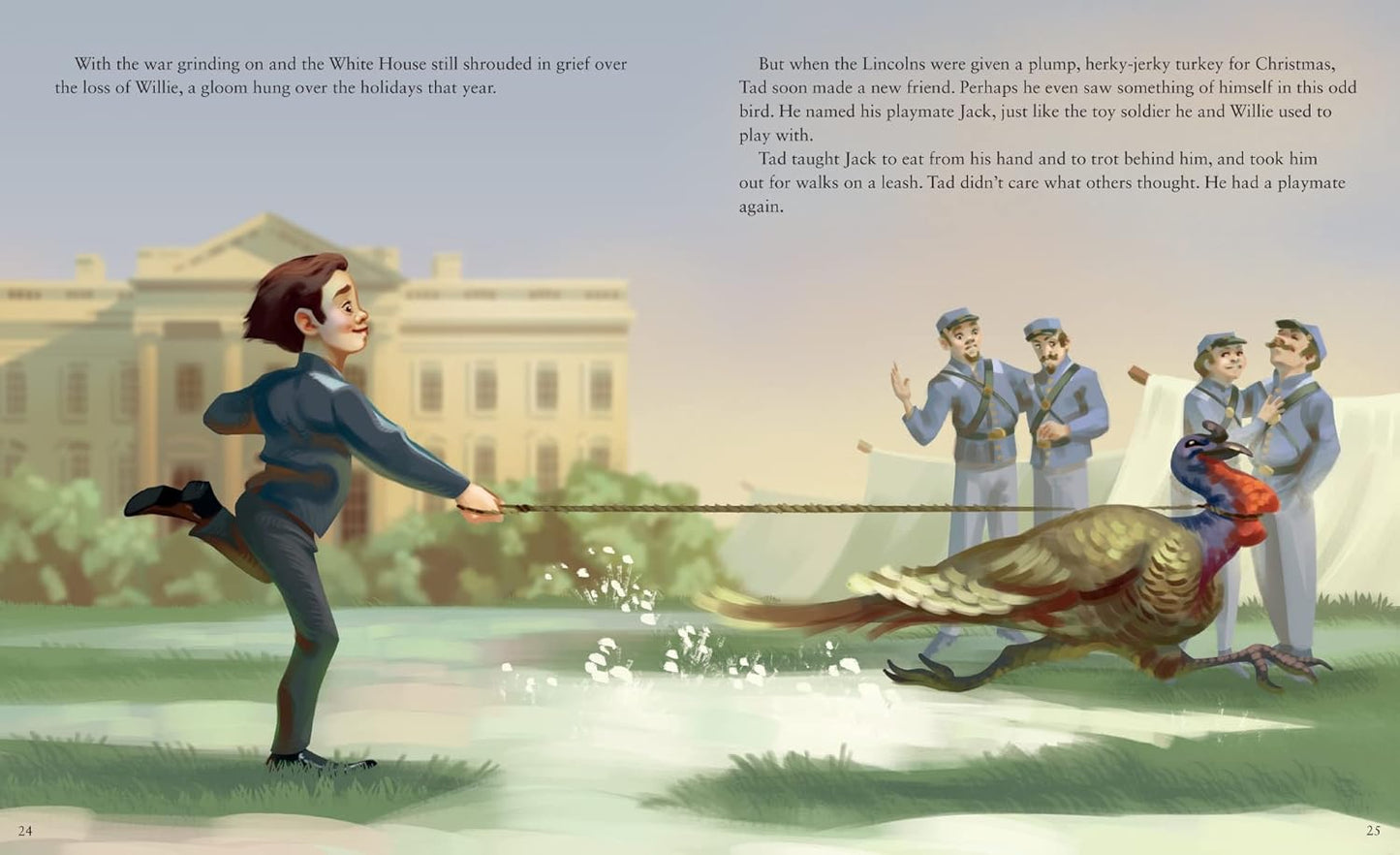 Tad Lincoln was forever getting into trouble. He bounced around the White House making mischief and annoying almost everyone but the president. Yet Tad was his father’s joy and comfort amidst a brutal war, a family tragedy, and the toll of holding the nation’s highest office. When Tad befriends a turkey meant to be holiday dinner, his plea for the pet to be spared teaches Abe a lesson about mercy. It also starts the tradition of the presidential turkey pardon, a tradition that presidents carry on to this day.