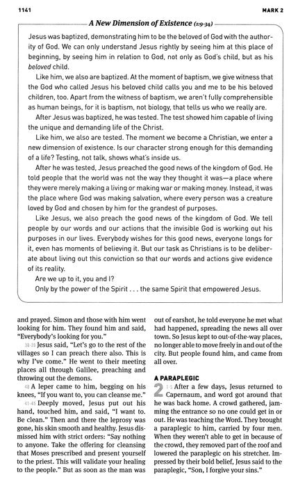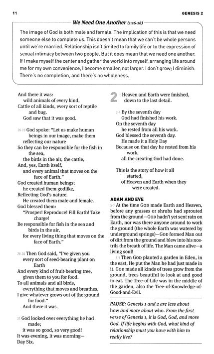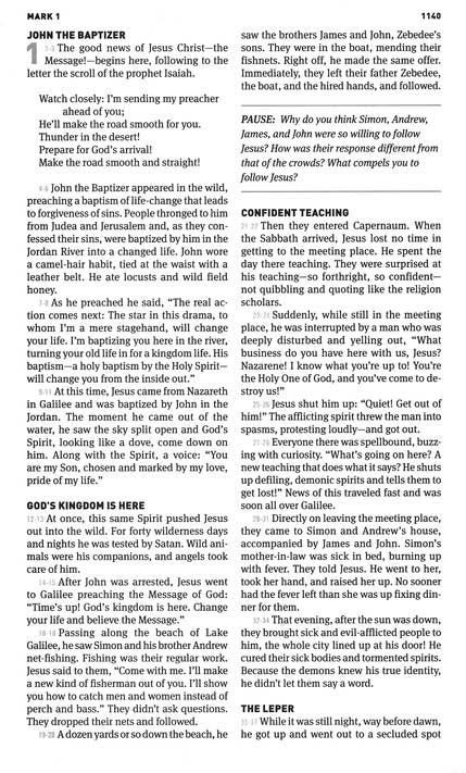 The Message Devotional Bible invites you on a journey into the Bible story, and challenges you to grow deeper in your relationship with God as you read. The devotionals included in thie edition will give you food for thought and help you to apply the Bible to your daily life in real ways.