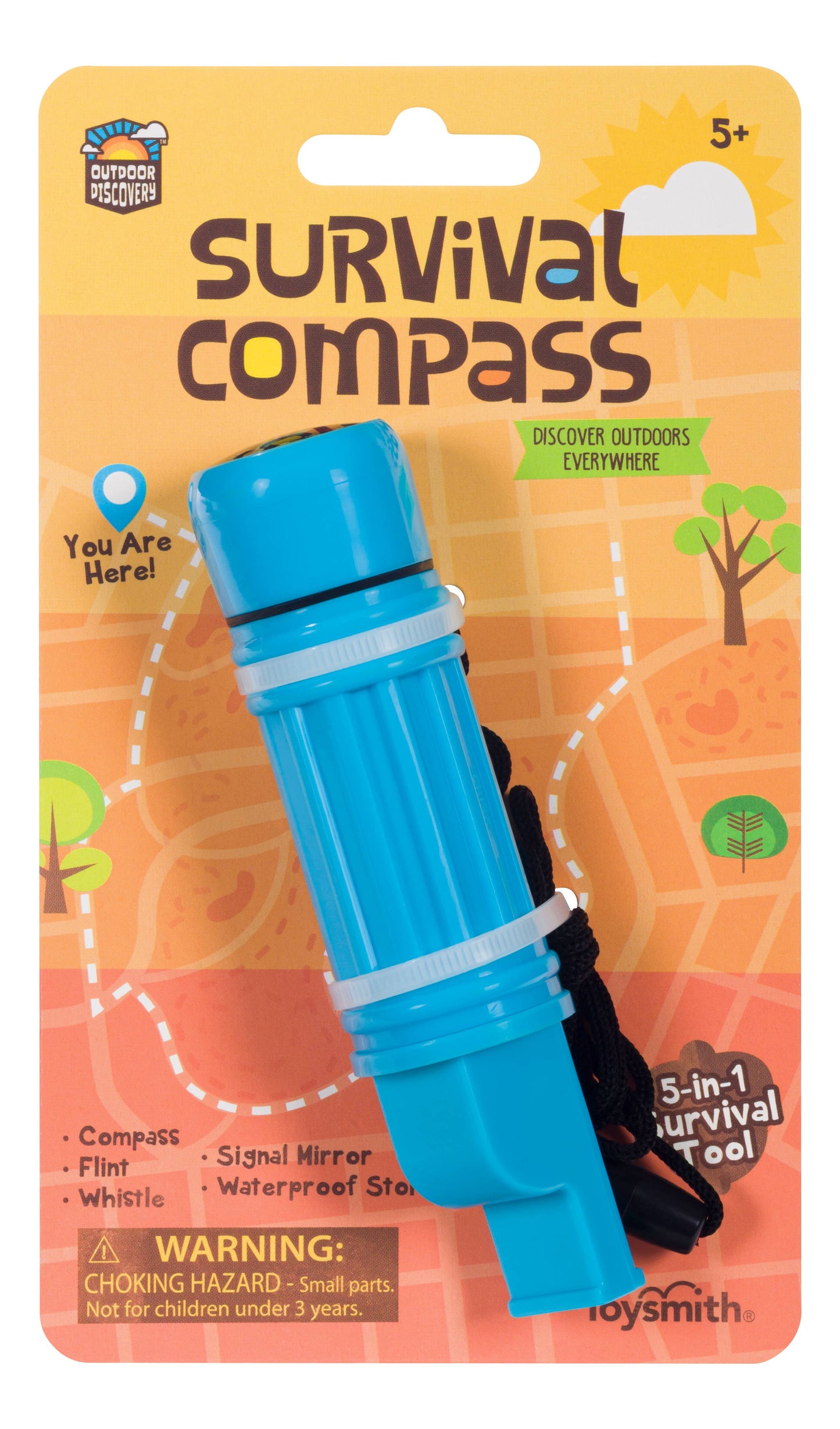 The Outdoor Discovery Survival Compass is a 5-in-1 kid-sized survival tool. This multifunctional tool has a screw top and comes in a variety of bright colors. Includes a compass and whistle, as well as a signal mirror and flint strip inside, and waterproof storage and lanyard outside. It’s lightweight and easy to hold. At only 4.5 inches long, this combination survival tool has everything kids need to feel safe and secure when exploring the outdoors. Get an assortment of 24 individually packaged Survival Compass items with a colorful display box.
