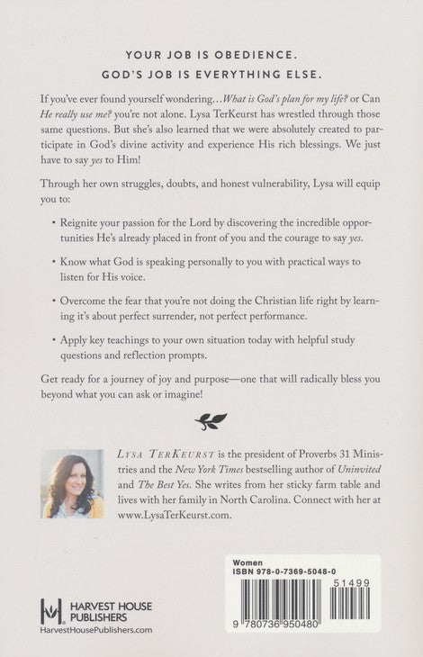 Total obedience to Christ can transform an ordinary walk into a remarkable journey. Sharing personal experiences and biblical insights, TerKeurst shows you how to discern God's voice, follow his direction, and discover a life of joy and purpose as you partner with him. Includes a Bible study. Previously titled Radically Obedient, Radically Blessed. 192 pages, softcover from Harvest